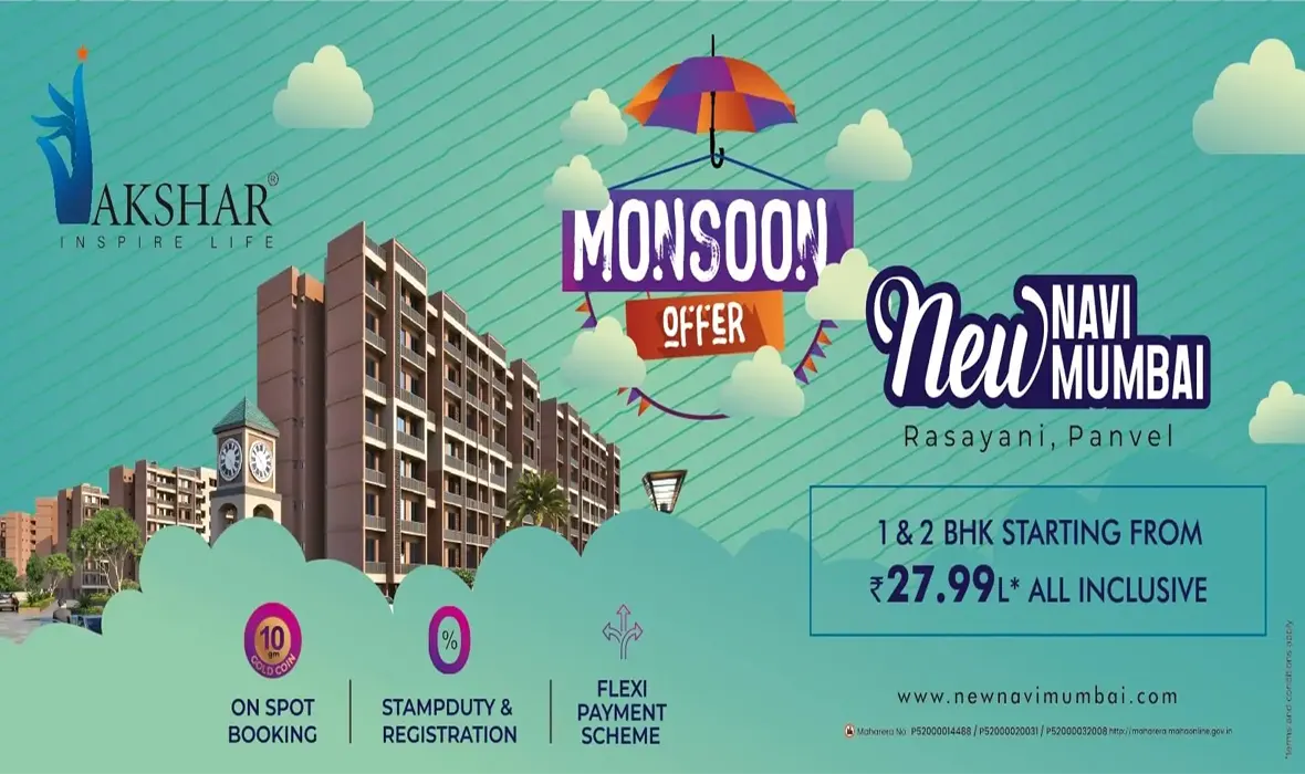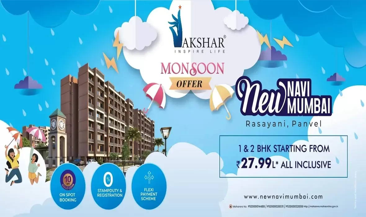 • Ans: Akshar Rivergate Rasayani offers 1BHK, 2BHK apartments with pricing starting at ₹27.99 Lacs. Carpet areas range from 450 - 970 sq.ft.. Price varies by configuration, floor level, and unit facing. Contact Akshar Group at +919137458691 for current availability and personalized quotes.
