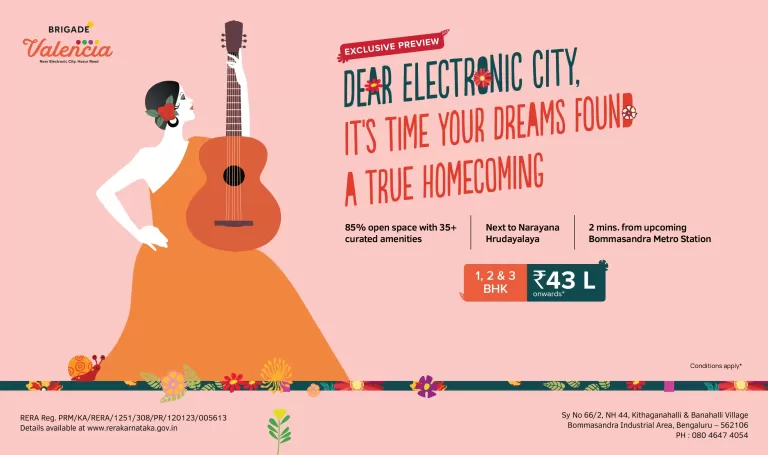 Ans: The sales office for Brigade Valencia Cielo is located at Bommasandra, Electronic City, Bangalore. Contact: +919137458691.