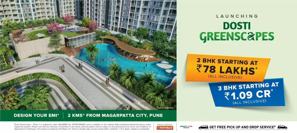 Ans: Yes, Dosti Greenscape Hadapsar in Hadapsar Pune is considered a good investment due to its location, Dosti Realty's reputation, and growth potential in .