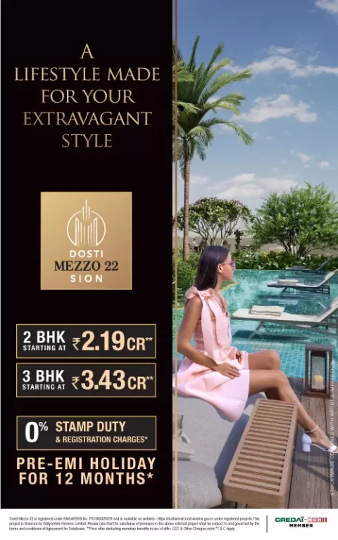 Ans: The price of Dosti Mezzo 22 Sion starts at 2.19 Cr.* Onwards.