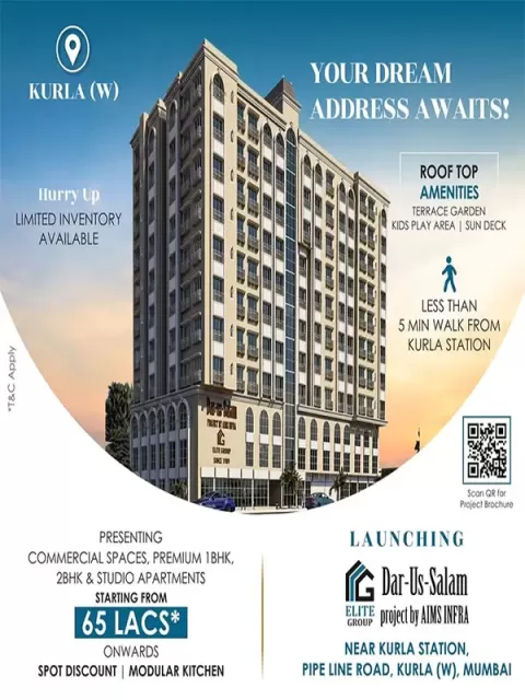 Ans: Contact Elite Dar Us Salam Kurla West sales team at +919137458691 or use the enquiry form on this page for immediate assistance.
