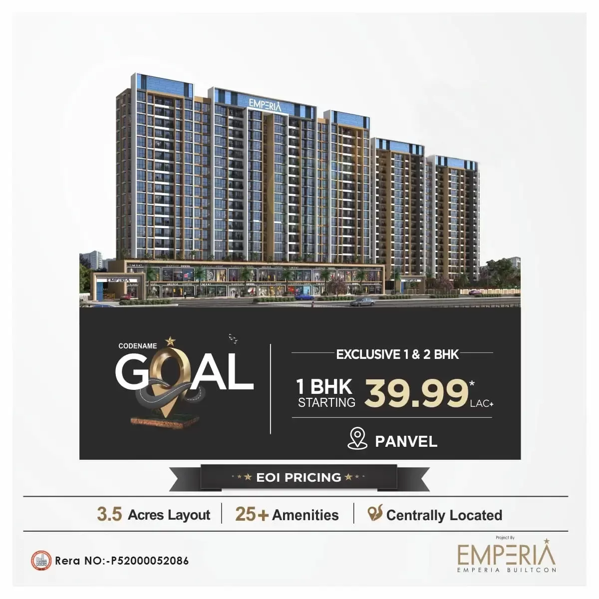 Ans: Yes, Emperia Codename Goal Panvel is RERA approved. RERA Number: P52000052086.