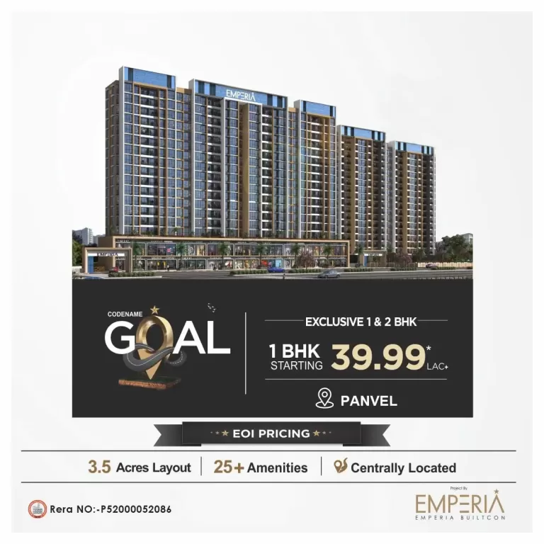 Ans: Yes, Emperia Codename Goal Panvel has flats available for sale in 1 BHK, 2 BHK, 2 BHK Large. Contact us at +919137458691 for current availability.