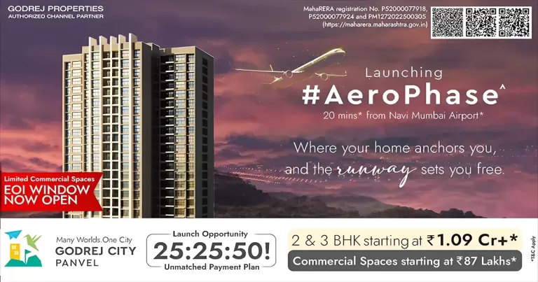 Ans: Yes, Godrej Aerophase Panvel has flats available for sale in 2 BHK, 3 BHK, 3 BHK SIgnature, Commercial Spaces. Contact us at +919137458691 for current availability.