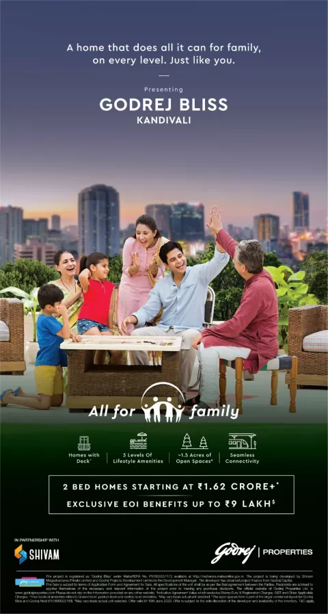 Ans: The price of Godrej Bliss Kandivali East starts at 1.62 Cr.+* Onwards.