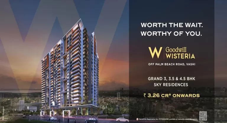 Ans: Goodwill Wisteria Vashi offers 3, 3.5, 4.5 BHK configurations. Detailed floor plans are available in the Site & Floor Plan section above.