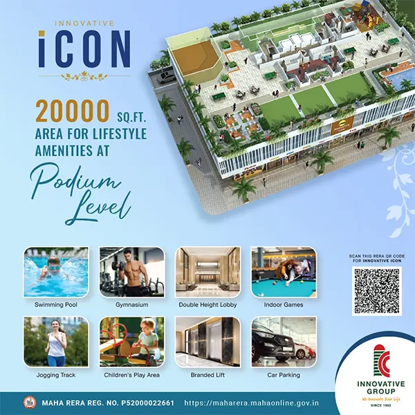 Ans: Innovative Icon Taloja offers premium amenities including clubhouse, swimming pool, gymnasium, landscaped gardens, children's play area, and 24/7 security.