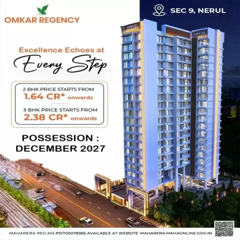 Ans: The price of Omkar Regency Nerul starts at 1.64 Cr.* Onwards.