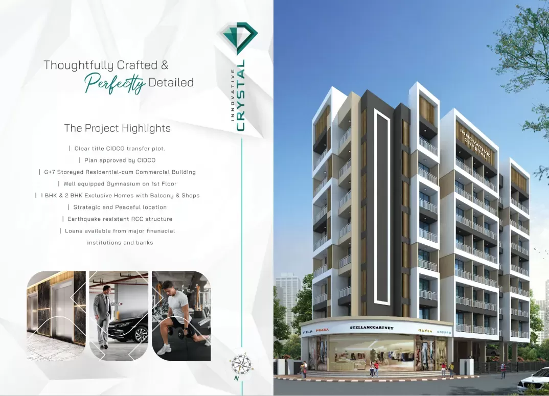 Ans: Pinnacle Innovative Crystal Kharghar offers 1, 2 BHK configurations. Detailed floor plans are available in the Site & Floor Plan section above.