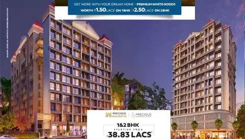 • Ans: Precious Majestic Pushpak Nagar offers 1BHK, 2BHK, Commercial Shops apartments. Areas: 475 - 1,450 sq.ft..