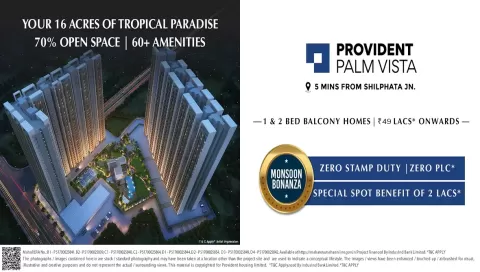 Ans: Yes, Provident Palm Vista Shilphata has flats available for sale in 1 BHK, 2 BHK, 2.5 BHK. Contact us at +919137458691 for current availability.