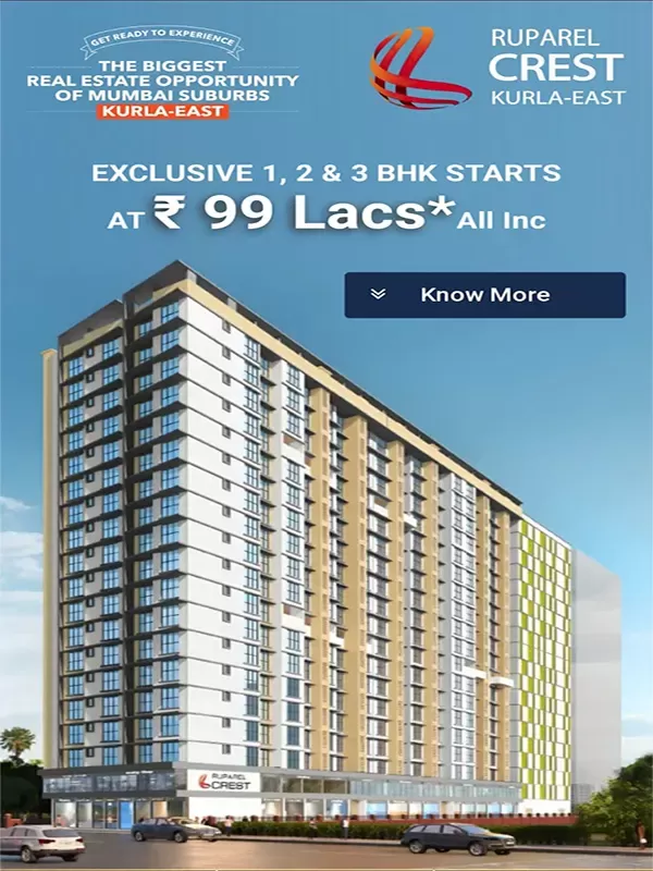 Ans: The price of Ruparel Crest Kurla East starts at 99 Lacs* Onwards.
