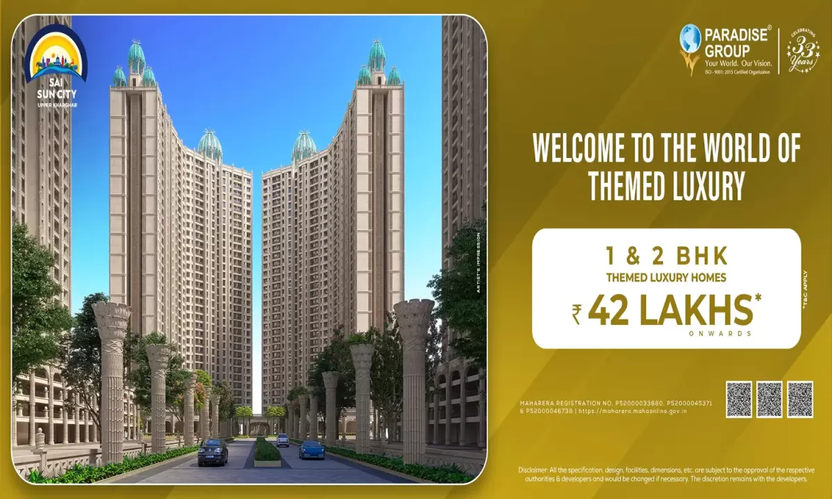 Ans: Yes, Sai Sun City Upper Kharghar in Kharghar is considered a good investment due to its location, Paradise Group's reputation, and growth potential in .