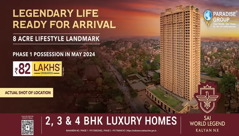 Ans: Yes, Sai World Legend Kalyan Nx in Kalyan is considered a good investment due to its location, Paradise Group's reputation, and growth potential in .
