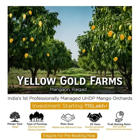 Ans: The price of Yellow Gold Farms Mangaon starts at 15 Lakh + Onwards.